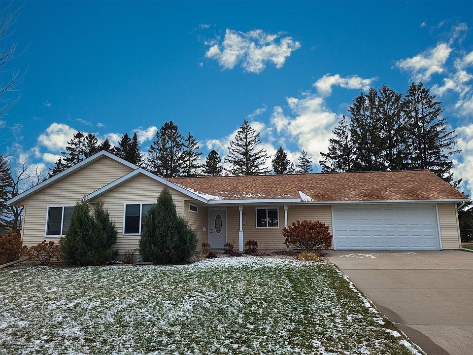 MOVE RIGHT IN...and start unpacking! This 3BR,2BA ranch was built in 2014 & is a one-owner home with zero-entry from the front door and back door from the garage. Open concept floor plan with spacious living room w/gas fireplace set in an antique wood surround, dining area w/patio door leading to the deck overlooking the fenced backyard and the kitchen which is complete w/appliances and snack bar. You will love the main floor laundry located near the BRs including the primary BR w/en'suite featuring large vanity w/double sinks & shower stall plus there's a walk-in closet for easy storage. The second BR offers built-in desk & bookcases making it perfect to double as an office if you prefer. Full BA with tub/shower & third BR complete this pretty yet practical picture. Lower level features two egress windows & plumbing stubbed in for a third BA & is ready to finish to suit your taste & needs. New roof, vinyl siding and concrete drive make for easy maintenance too. HURRY & BE IN FOR THE HOLIDAYS! (Section of back soffit is dented)