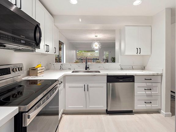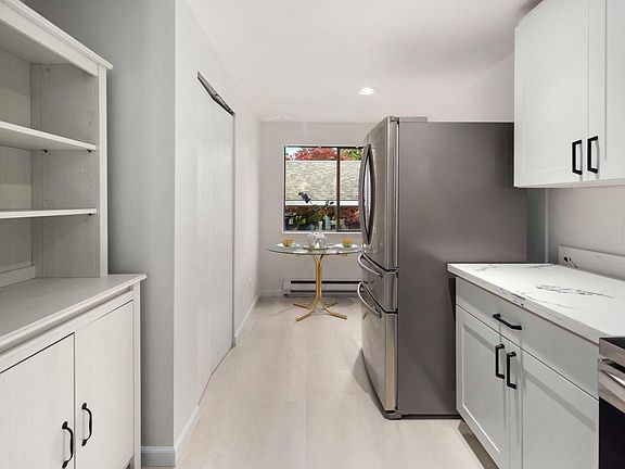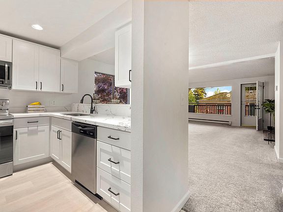 Live in the most desirable are of City Of Des Moines. With only 6 minutes to the charming and vibrant downtown area enriched by amazing cuisine, waterfront parks, hiking trails, three schools within walking distance, newly, getting built light rail and tons of conveniences. This spacious, remodeled from bottom up condo unit at the Misty Woods feels very much like a house with over 1100 SF living space flooded with natural lights on all corners, sporting brand new top of the line stainless steel appliances, new kitchen with designer quarts counter tops and ample cabinetry, 1.25 bathroom, impressive in unit full size washer/dryer laundry room, tons of storage closets throughout. Cozy, wood burning fireplace, spacious living room with two dining rooms and bar area. Unique primary bedroom with double walk in closets. Catch amazing sunsets from the comfort of your own patio facing west large enough to barbeque and with additional storage. Two designated parking spaces, one covered. Enjoy the easy living in this amazing community.