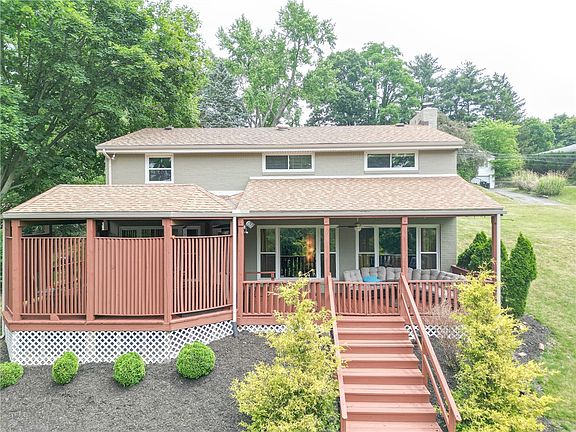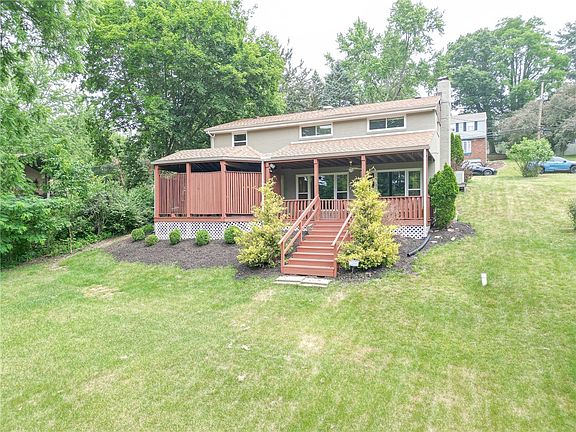 Too many updates to list them all. Windows, roof, gutters, sewer line, hot water tank, siding, flooring,...all have been updated within the last 5 years, some in the past few months. Don't let the front of the house fool you into thinking that it is a small ranch, the living room, with a wood burning fireplace, large gourmet kitchen, dining room are at the same level as the beautiful, expansive backyard. Enter the inviting tiled foyer, follow the steps and enjoy the wall of windows welcoming you. There are two accesses leading you to the amazing covered deck, overlooking the backyard. A powder room and laundry room are also on that level. Three bedrooms and a full bath are on the main level.
