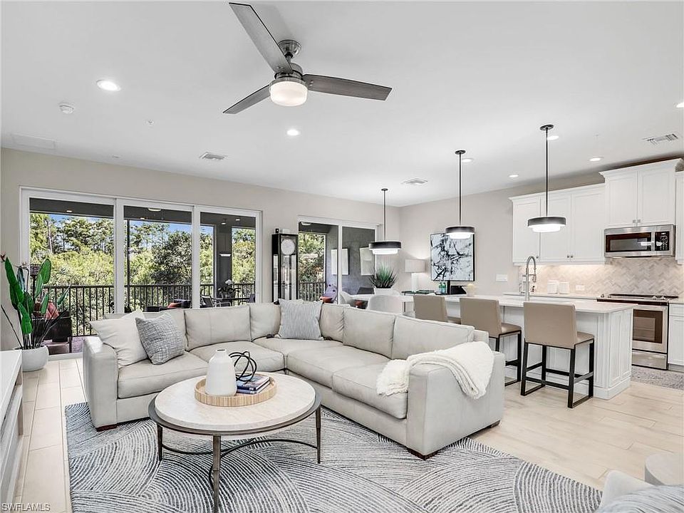 ONE OF THE BEST LOCATIONS IN THE COMMUNITY, PRIVATE PRESERVE VIEWS. Welcome to your exquisite second-floor coach home, a true gem offering 3 spacious bedrooms, 2 luxurious bathrooms, and a convenient 2-car garage. Step inside to discover a meticulously upgraded interior that shows like a model home, featuring custom closets designed for optimal organization, elegant custom lighting, and recessed lighting throughout that illuminates every corner. The modern kitchen and bathrooms are adorned with sleek quartz countertops, providing both style and durability. Impact windows offer peace of mind and energy efficiency. The garage is equipped with a 240V outlet for EV charging. Nestled within the beautiful community of Seychelles, this home boasts resort-style amenities that cater to your every desire, including a state-of-the-art fitness center, a stunning resort-style pool and spa, a BBQ area perfect for entertaining, and a cozy fire pit for those serene evenings under the stars. Why wait for new construction when this impeccable home is ready for you to move in today?! Located just 10 minutes from downtown Naples and 5th Avenue, come experience luxury living at its finest, with every detail thoughtfully crafted to enhance your lifestyle.