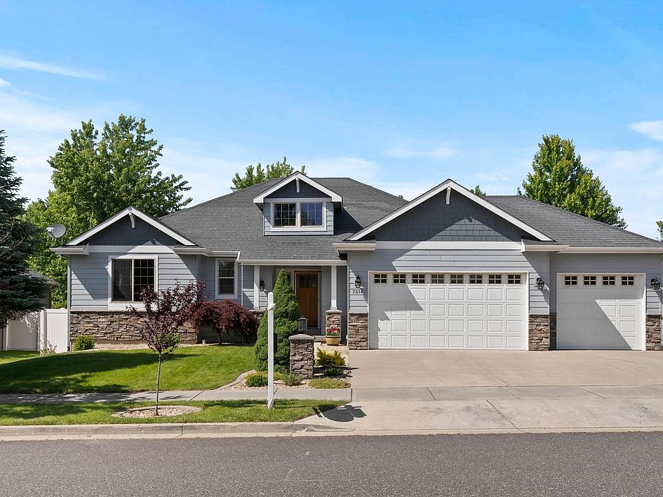 This move-in ready 4 bed, 3 bath home in Jesse's Bluff is a true gem. The main floor boasts a spacious primary bedroom with a full bathroom and walk-in closet as well as another bedroom and bathroom, perfect for accommodating guests or creating a cozy office space. Main floor laundry near garage entrance. The open concept living and kitchen area is designed for seamless entertaining and everyday living. The vaulted ceilings create a sense of spaciousness, while a large picture window overlooks the covered composite deck and the swimming pool, providing a stunning backdrop. The kitchen features a gas cooktop, a new dishwasher, a large eat bar, elegant granite counters and warm wood cabinets. The basement of this home features 2 bedrooms, a bathroom, and additional laundry hookups. With a full kitchen setup, it's an entertainer's dream or a perfect in-law suite for guests. This home is a true sanctuary. It offers a seamless combination of style, functionality, and relaxation.