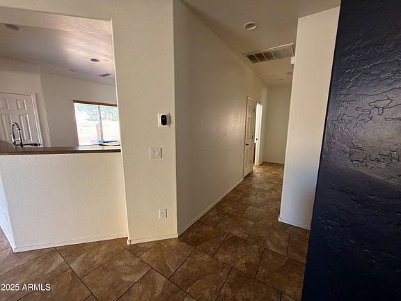Open layout with stainless steel appliances, breakfast bar, and cozy electric fireplace. Primary suite features a double walk-in shower and huge closet. Backyard includes covered patio, artificial turf, and privacy wall. Owned APS solar—no payment, just credits!