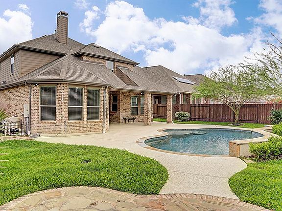 Beautifully manicured/maintained home in manned gated section of Harmony, oversized 2 car garage (tons of room for storage), oversized driveway w/stone walking paths around entire home. 3 yr new HEATED pool w/ extensive decking/covered patio. Gutters, solar panels, sprinkler system. Huge master w/updated custom shower, study down, game room + 3 BR's up, Texas basement (walk in storage area) upstairs. You will love the neighborhood amenities and location with easy access to 99, Hardy, I-45.