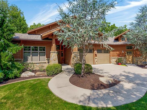 Spectacular Rev. 1.5 sty. masterfully built by Bruce Rieke sets on a quiet cul-de-sac backing to the 10th hole of the Shadow Glen Golf Club! A true custom design features a rare 4-car garage, high ceilings, natural stone accents, solid wood doors, wide plank Hickory flooring & extensive trim detail. Open floor plan includes a Great rm. w/14 ft ceilings, vaulted ceilings in the dining rm & Hearth rm., kitchen equipped w/Viking appliance package, exotic granite tops, huge island, a walk-in pantry blends into the laundry rm & spacious mud rm entry from garage. Primary suite boasts a recently updated bath with new tile walk-in shower & flooring creating a fresh new look! 2 bdrms. & 2 baths on main flr., 2nd bdrm. is currently being utilized as a home office/Den & would require a slight modification to recreate a closet. 2 bdrms. & 2 baths in the finished walkout LL w/boast rare 10' ft. foundation walls, along with an awesome wet bar, wine cellar, along with ample entertaining, recreation & media space! Basement is excavated under both garages w/suspended slabs to provide exceptional extra storage or shop space. Newer 50-yr. comp roof, zoned high efficiency HVAC, 1 newer AC unit & 1 newer furance and plenty of outdoor living space. You won't want to miss this one!