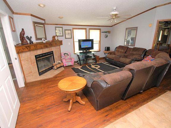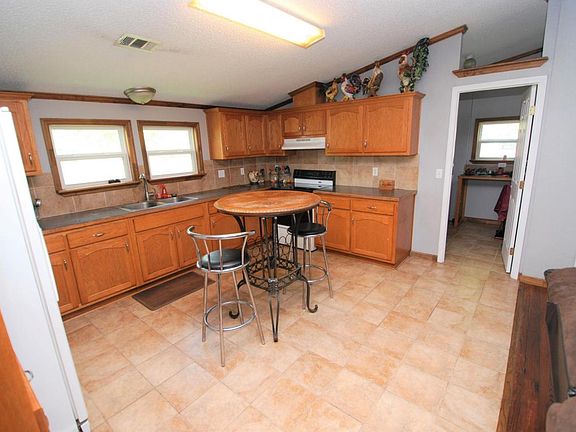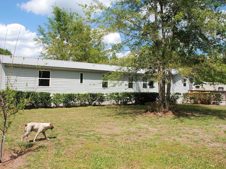 BACK ON MARKET! ALL INSPECTIONS, ENGINEERING REPORT, SURVEY AND WDO COMPLETE! Wonderful possibilities for this 5 acres with mobile home, separate man cave, summer kitchen & outbuildings! Mobile home features knockdown walls, laminate & tile floors. Enter at rear of home through large foyer & step into family room & kitchen. Split bedroom plan allows privacy with guest rooms on other end of the home. Home features separate living room & dining area. There is also a separate building used as man cave with bath on the property. Property is fenced with front & rear pond; summer kitchen has fire pit, wood bar, porch swing & refrigerator. Cooker does not convey. Rear of property has workshop, pole barn, container storage & 2 sheds. All buildings sold AS IS with seller making no repairs.
