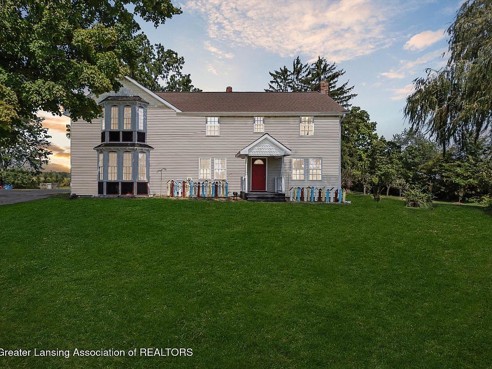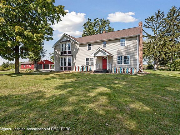 Enjoy the perfect mix of country living and convenience with this beautifully updated 1940's farmhouse set on 5 picturesque acres. Whether you dream of starting a hobby farm, keeping chickens or goats, planting a garden, or hosting bonfires under the stars, this property gives you the space to make it happen, all while benefiting from low Olive Township taxes, St. Johns schools, and easy access to major roads and highways. Inside, you'll find over 3,800 sq ft of living space with hardwood floors throughout and a spacious open-concept main floor that flows seamlessly between the living, dining, and kitchen areas. The inviting great room with a gas fireplace makes the perfect gathering spot. With 7 bedrooms, there's room for everyone or space to create a home office, gym, or guest suites. The basement offers incredible versatility, featuring a full bath, bedroom, and kitchenette—perfect for a private apartment, in-law suite, or rental income. Laundry is conveniently located on both the main level and basement. Major updates include a new septic system in 2024, giving you peace of mind. Outside, the property includes sheds, lean-tos, and mini barns, providing plenty of options for animals or storage. This one-of-a-kind property blends farmhouse charm, modern updates, and the freedom of country living with the convenience of being close to everything Mid-Michigan has to offer.
