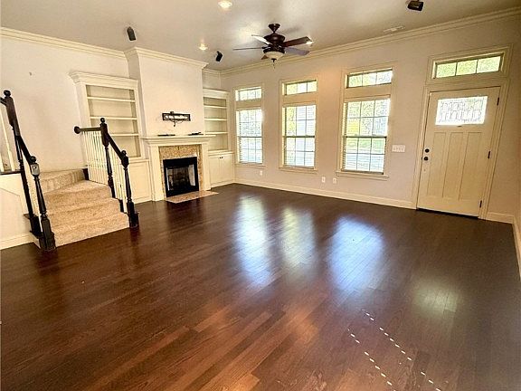 3 bed 2.5 bath patio home in beautiful Lakewood SD. Large living room with gas fireplace and built ins open to the spacious kitchen with large island. Primary bedroom, half bath and laundry room complete the main floor. Primary bathroom has a large walk in closet, whirlpool tub and seperate shower. Two additional bedrooms upstairs, one bedroom has a built in desk, perfect for a home office. Kitchen has stainless appliances, granite countertops, and comes with refrigerator and washer dryer. Hardwood floors downstairs, and carpet in bedrooms. Covered outdoor patio with small grass area offer a nice outdoor space.2 car attached garage. Landscaping is handled through POA. Located right next to Fayetteville Athletic Center and walking distance to Botanical Gardens and trails.