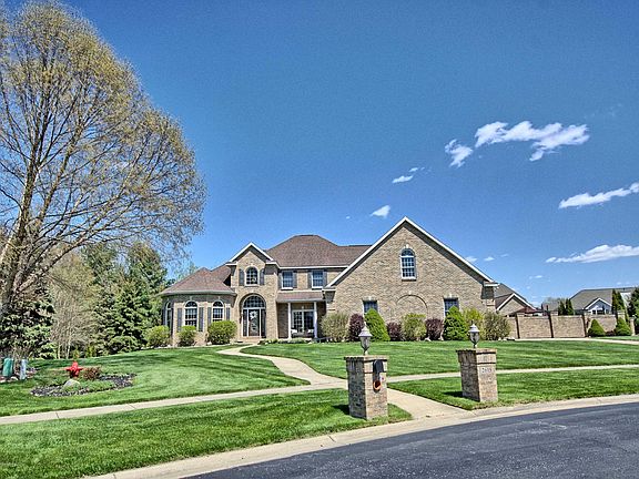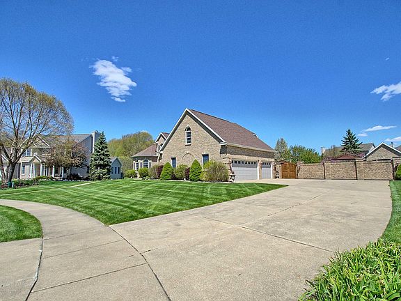This elegant custom brick home has all the charm and amenities wrapped together for a family to love and come home to. From the moment you step onto the property, you'll fall in love with the beautifully landscaped property along with the magnificent pool house, relaxing hot tub and pool, spacious deck, flowering trees, custom gas fire pit, and outdoor space that will entertain your family and guests like a permanent vacation. Inside the leaded glass door entry, you'll be immediately surroundedby luxury finishes and the highest quality materials. The hardwood foyer entry is adorned by grand columns and open spaces adjoining the open dining room on one side, and a magnificent study with trayed ceilings on the other. See supplement for more information