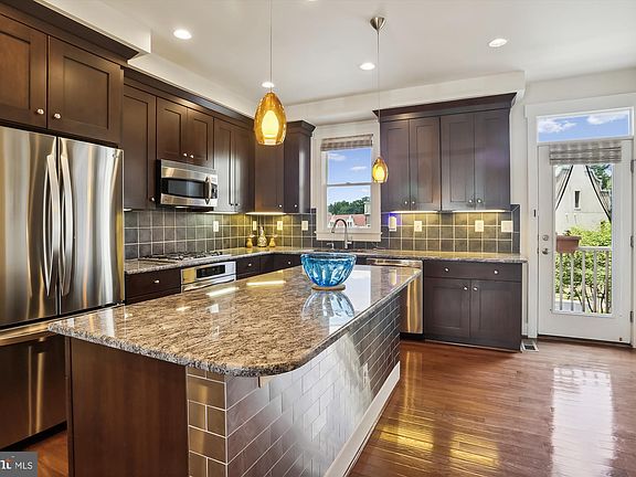 Stunning 4 level townhome with attached 2 car garage in desirable National Park Seminary neighborhood! Designer touches throughout! Main level includes a fabulous gourmet kitchen with large center island, gas cook top & wall oven, built in desk, tile backsplash, hardwood flooring, stainless appliances and exit to rear deck. The kitchen opens to spacious dining & living rooms with large windows & high ceilings for amazing natural light! Upper level includes the primary bedroom with a walk in closet, newly remodeled ensuite bath with soaking tub & separate shower plus a second bedroom with an ensuite bath. You will love the convenience of upper level laundry with ample extra storage. Top floor includes a third bedroom with an ensuite full bath, a loft office/family/playroom and access to a private roof top deck! Cozy lower level includes a family room with gas fireplace, built ins and a 2 car garage. Enjoy the comfort of dual zone heating and A/C. This home has everything you need! Please see virtual tour with interactive floorplan.