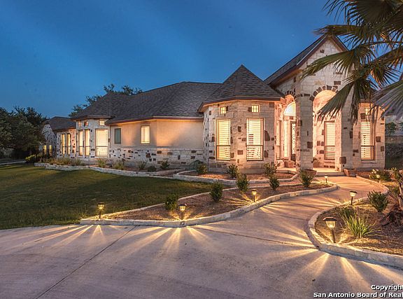 Stunning hill country home located on 2 acres in the highly sought-after neighborhood of River Crossing. Come see this beautiful one story, 4 bedroom 4 bath home featuring an open floor plan that's great for entertaining. Gourmet kitchen w/butlers pantry and extensive granite breakfast bar. This home features beautiful travertine and wood floors, coffered ceilings, floor to ceiling windows, 4th bedroom/game room located over the garage with its own full bathroom, outdoor kitchen, and expansive covered patio