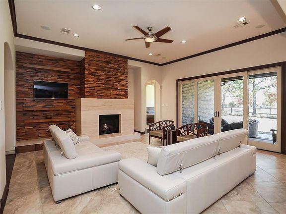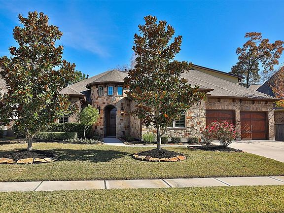Exclusive, GATED community of Lakes of Cypress Forest with resort style amenities of trails, lakes, bridges, fountains, & swimming pool offers quick access to major thoroughfares, shopping, restaurants, & Exxon Mobil campus. Located on quiet culdesac street & peaceful WATER FRONT lot sits this stunning 1.5 story home with a transitional design that\'s a perfect combination of modern (travertine and cedar beams) with traditional (wood flooring and plantation shutters) elements. Eye catching fireplace surround of travertine and stacked wood. Open floor plan with sliding glass door that opens onto patio invites the outdoors in. Dinner & a movie will be a regular event with a Chef\'s kitchen with double ovens, 5 burner gas cooktop, & a 3 compartment sink for easy clean up and a Media rm with theater seating, 5.1 surround sound, & a 110\" screen. Relax on the covered patio with tranquil water views & listen to the soothing sounds of a fountain. Extensive storage. Custom closets. Klein schools