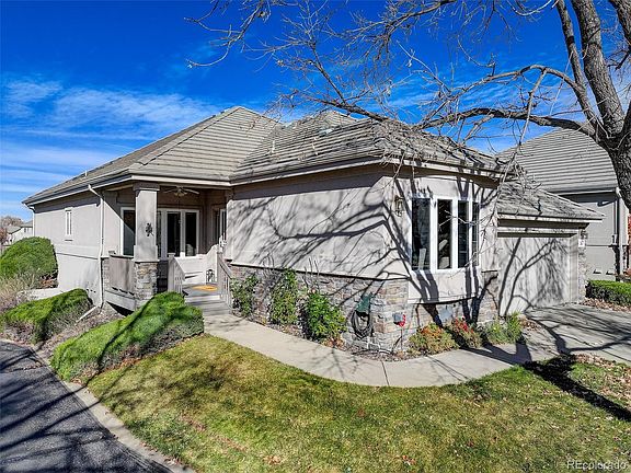 Stunning ranch-style home backing to the golf course with mountain views! This beautifully maintained residence offers low-maintenance living in an incredible setting. Its features include soaring vaulted ceilings with skylights, hardwood floors, fresh paint, new carpet, and an open floor plan filled with abundant natural light. The kitchen is designed for both cooking and gathering, offering granite counters, newer upgraded stainless-steel appliances, a breakfast bar, tile backsplash, and a cozy eating nook with wonderful views. You’ll love entertaining family and guests in the separate formal dining room. The comfortable living room, with its high ceilings and cozy fireplace, is a wonderful space to unwind at the end of your day. The main-floor primary suite captures serene mountain views and features a spacious, updated 5-piece en-suite bath with an oversized shower, jetted tub, and a walk-in closet with built-in organizers. A sunny main-floor office with a bay window is the perfect place for taking care of business. The convenient laundry room with utility sink and storage cabinetry adds exceptional functionality. The finished basement expands your living space with a very spacious family room, a large custom, temperature-controlled glass wine cellar, and a convenient wet bar. The lower level also has a separate guest bedroom and a ¾ bath. Outside, you’ll find a newer, spacious back deck overlooking the golf course, with mature trees and stunning mountain views - a space you’ll never want to leave. Relax on the welcoming front porch while enjoying a quiet cul-de-sac setting. The low-maintenance exterior also has a durable concrete tile roof. The HOA provides complete grounds maintenance and snow removal, so you’ll have plenty of time to enjoy the two community pools, a clubhouse, tennis courts, and beautiful walking trails. This exceptional home combines luxury, convenience, and a coveted Legacy Ridge golf-course location - truly move-in ready!