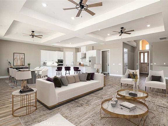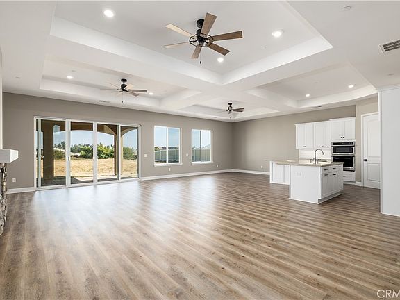 NEW CONSTRUCTION in the heart of Menifee. This stunning single story home features 4 bedrooms, 3.5 bathrooms and over 3,000 sqft. Sitting on 1/2 acre with space for ADU, NO HOA and NO MELLO ROOS! Paid Solar! Located in the exclusive Boulder View Estates community. 3 car garage with potential RV Parking. As you enter the home you are greeted by the Luxury Vinyl Plank Flooring throughout, tall coffered ceilings and multiple ceiling fans. Ample natural light from the grand double sliding glass doors. Stack stone gas fireplace is perfect for those cold winter nights. The entertainers kitchen boasts granite counters, upgraded tile backsplash, under cabinet lighting, soft close drawers, stainless steel SmartThink Samsung appliances, 2 ovens plus microwave/convection oven. Plenty of room for your snacks in the walk-in pantry. Enjoy breakfast at the large kitchen island. The Master Suite is located at the end of the hallway with new upgraded carpet, coffered ceilings with accent lighting and sliding glass doors to the backyard. The spacious walk-in closet has plenty of shelves for all your shoes. Enjoy a bubble bath in the large soaking tub in the master bathroom with dual sinks and vanity. Plenty of space in the walk-in stone accented shower. 2 separate water closets. Extra space for sauna or more storage. 2 secondary bedrooms with walk-in closets, connected by the jack & jill bathroom. Each have their own sink and share a tub/shower and water closet. Across the hallways is the Junior Suite with it's own private bathroom with walk-in stone accented shower, and walk-in closet. Potential to add private entrance. At the end of the hallway is the laundry room with extra storage. The backyard is a blank slate. Add an ADU for family or build your dream pool and enjoy the mountain views. TONS OF POTENTIAL! Close to schools, shopping and freeways. Minutes away from Temecula Wineries. Menifee is one of the fastest growing cities in California.