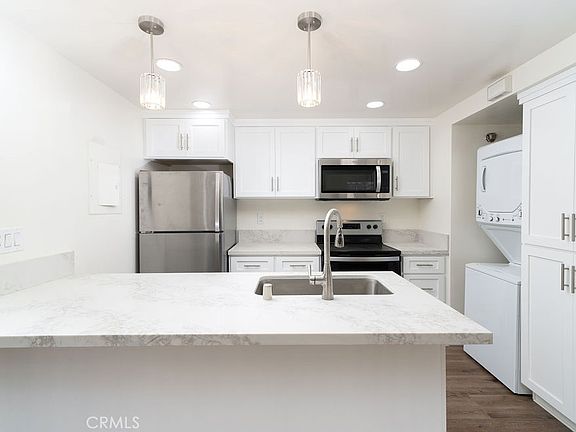 Recently renovated upstairs condo in the sought-after Mission Viejo Las Palmas community! No detail overlooked in this recently renovated 2-bedroom, 2-bathroom condo. Stunning open kitchen boasts new cabinets, self-closing drawers, quartz countertops, upgraded appliances, and a convenient breakfast bar! The spacious open living room features luxury vinyl flooring and recessed LED lighting. Each bedroom offers plush new carpeting and its own bathroom, complete with a spacious walk-in or wall closet. Inside tract location this corner unit, features plenty of natural light and a secluded private balcony. Enjoy the convenience of in-unit laundry with brand new washer/dryer, and two assigned parking spaces (one covered with additional storage). Residents of the Las Palmas community have exclusive access to 2 pools and a Club House. Ideally situated near parks, shopping centers, freeway access, and more! Rent includes water, trash, and access to Lake Mission Viejo, offering recreational activities such as swimming, boating, fishing, free concerts, and park amenities. Property equipped with alarm system. Showings available by appointment only.