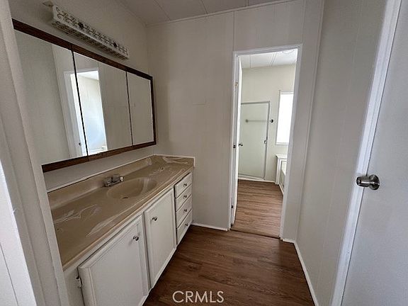 This REO listing is located in E. Hemet in a senior area sub-division. Manufactured home on a permanent foundation. Features two bedrooms, Living room with dining area with a bult in hutch. Spacious kitchen with new appliances that open onto a large family room with a nice sky light. There is an enclosed patio with new laminate flooring, great for hobby/utility room. Large master suite with master bath that features separate shower and large bathtub. Second bedroom ahs access to jack and jill bathroom shared with the indoor laundry room. This manufactured home has a new roof, new laminate flooring throughout and fresh interior painting. Two sheds. Nice quiet cul-de-sac location. Well worth the look!