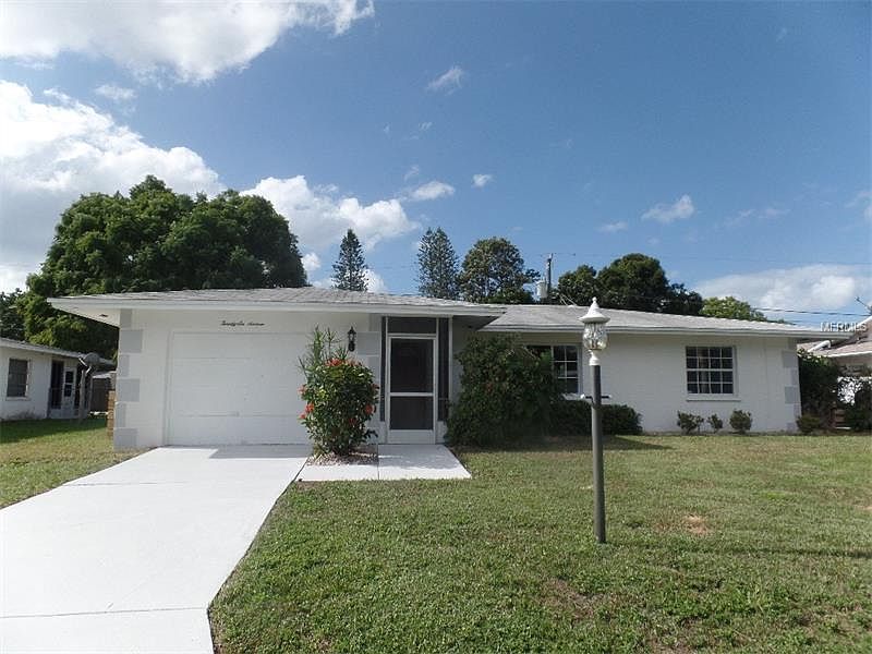 Tropical 3 bedroom 2 bath home in Casa Del Sol, close to the beach. Well maintained, split and open floor plan. Large indoor laundry room. There is a large family room in the back of the home and large screened lanai. The back yard has a nice workshop/storage shed in the back and is totally fenced in for pets or privacy. The home has been freshly painted and is in move-in condition. Hot water heater is 2012, roof and a/c unit 2001. Nice attached one car garage with extra storage and shelving.