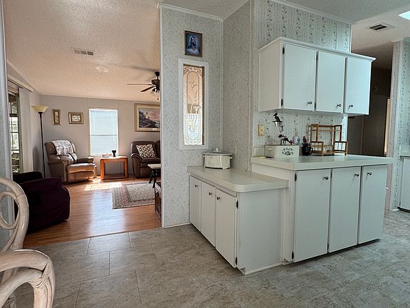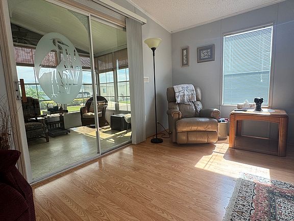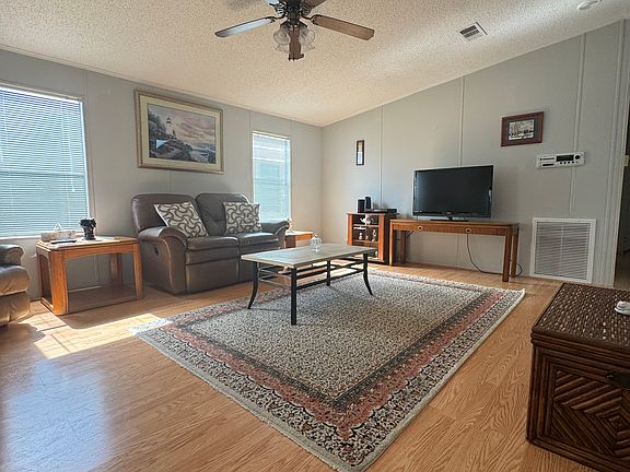 Furnished and move-in ready! This lovely 1994 mobile home has 1,040 sq ft of indoor living space. This home has a new roof and skylights, carport, and shed. AC is new. It features a large side driveway, front porch, and screened patio. Stepping inside from the carport you enter the large kitchen and dining area. The kitchen has updated stainless steel oven and refrigerator, and ample cabinet and counterspace. New flooring throughout the home. The large, open living room is perfect for entertaining your guests. The sliding glass door in the living room leads out to the front enclosed lanai with fitness equipment. The guest bathroom has a tub/shower combo and a large walk-in closet. The office/guest bedroom is spacious and can easily accommodate a queen-sized bed. Large master bedroom with a walk-in closet, ensuite bathroom with a step-in shower and sliding door, and a large linen closet. If you are looking for a home in a great, clean community...look no further. Call today to make this your Florida dream home! The home is located in Sun Key Village, an age-restricted, 55+ gated mobile home community that is considered to be among Florida's best communities on Florida's beautiful west coast. It is located near Ellenton Premium Outlet Mall, beautiful white sand beaches and golf courses where you can enjoy gorgeous sunsets every evening. Join in and enjoy a wide assortment of on-site activities, social events, and community amenities! You can take a refreshing dip in the community heated swimming pool, sit in the jacuzzi, enjoy a game of shuffleboard, pickleball, corn hole or putt putt, or spend your day relaxing next to the community lake. Treat yourself to resort-style amenities, beautiful spacious grounds, and an energetic community where you'll create meaningful relationships with people who share your spirit of living and making the very best of each day!
