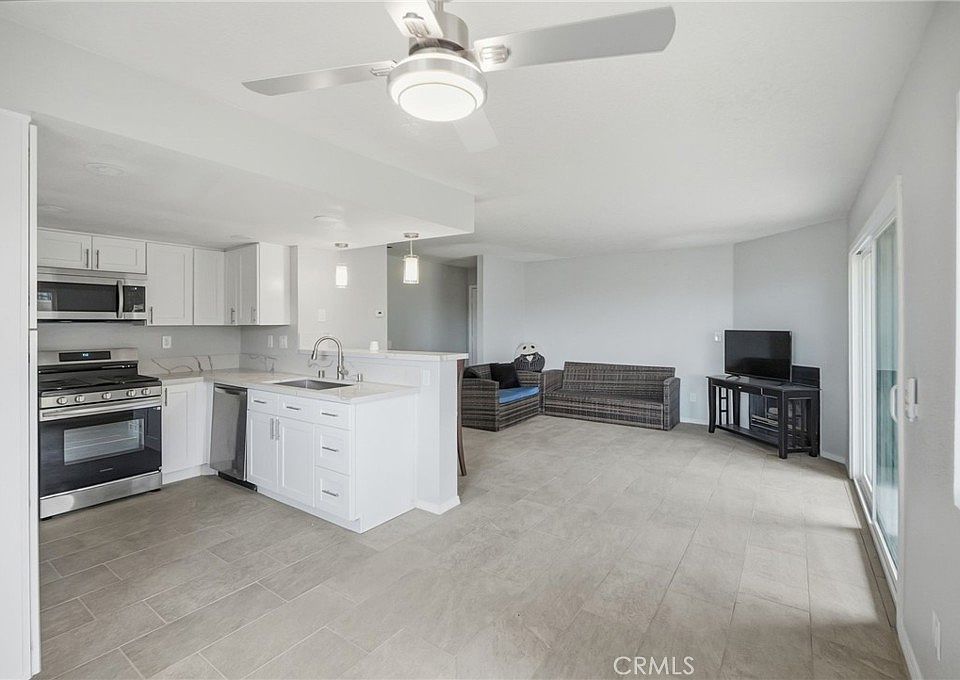 This fully renovated condo offers modern comfort and style throughout. Features include new windows, flooring, interior paint, and a new patio door. The open-concept living space has a fireplace flowing into the dining area and kitchen. The kitchen has granite countertops, a breakfast bar, and ample cabinet space, with refrigerator, stove, microwave, washer, and dryer.