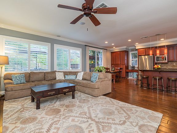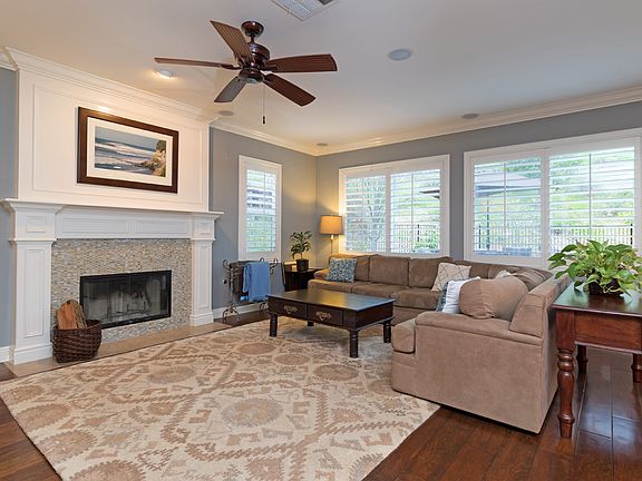 Massively upgraded San Marcos home on huge open space lot! This home offers a variety of modern features including hard surface flooring in the main living areas, crown molding and wainscoting throughout, high ceilings providing a nice open feel, updated paint, a luxury office perfect for working from home and a gorgeous built-in entertainment center in the family room. The updated gourmet kitchen boasts brand new stainless steel appliances, a dual oven and plenty of cabinet and storage space. With the largest lot on the block, this home has a massive backyard, perfect for entertaining and complete with a built-in BBQ station and access to a well-maintained path for biking, running or walking.?
