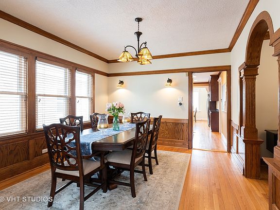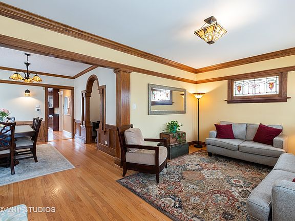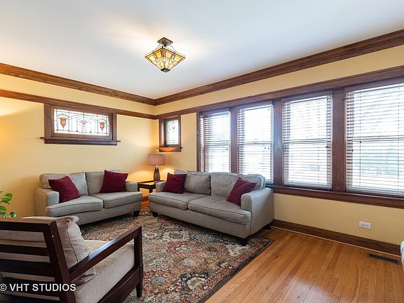 Classic Brick bungalow (4 bedrooms, 3 full baths) combines new amenities with yesterday's charm. Entryway and Living room with stain glass windows, Formal dining room complete with Tiffany style lighting, cove molding, full updated Bath and separate Office space. Newer Kitchen has an abundance of cabinet space, Granite counters, Stainless appliances, Breakfast nook plus pantry & 1st floor Bedroom with large closet complete the first floor. Hardwood floors throughout. 2nd floor has 2 large Bedrooms, full updated Bath. Finished basement with large Family room, large Bedroom (used as work out area) with spacious closet, full updated Bath & Laundry room. Drain tiles & Sump pump, storage areas complete the basement. Roof, Windows, Gfa/Ca, Plumbing, Electric all have been replaced. Side drive and a 2 car garage. Recently installed cedar privacy fence & professionally landscaped backyard. Great location for shopping, close distance to schools, train & expressways.