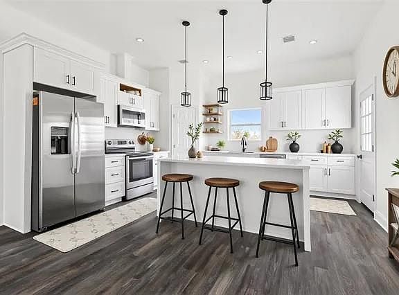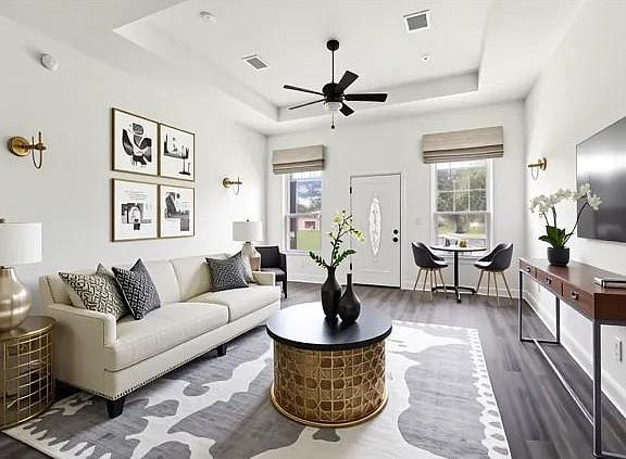 Experience modern living at its finest in this beautifully finished brand-new home offering 3 bedrooms and 2 full baths. The open floor plan creates a bright and welcoming atmosphere perfect for everyday living and entertaining. The spacious living area features a graceful tray ceiling, while the kitchen shines with quartz countertops, custom cabinetry, stainless steel appliances, and a walk-in pantry that adds both style and function.