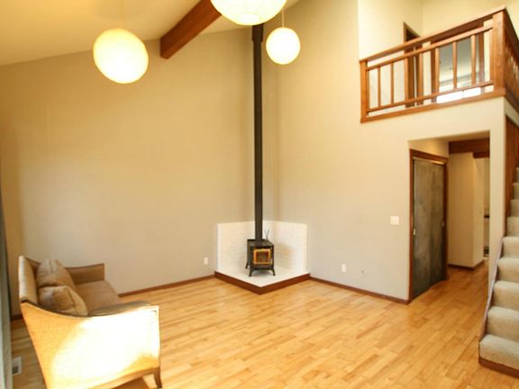 - Fireplace features: wood stove