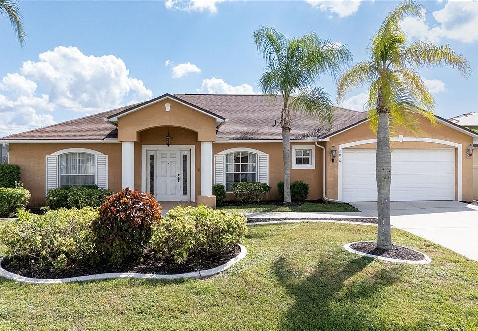 Opportunity knocks! In a perfect world, every home would be move-in ready. With some basic cosmetic fix-ups, this 3 bedroom POOL home will be. With just under 2000 sq ft. living area, this spacious home, built in 2003, has central utilities- all ASSESSMENTS HAVE BEEN PAID. The roof was replaced in 2023, air conditioner in 2017. There's white cabinetry and granite countertops in the kitchen, inside laundry room and a spacious primary suite. The primary bath has a soaking bathtub and a separate shower. Flooring, paint, some gutter repair are items that require attention. (Carpet has been removed in primary bedroom, virtually staged photos show tile) Did you know that Cape Coral has a beach? The PUBLIC BEACH at the Cape Coral Yacht Club (pictured here) is just a short drive- no need to cross any bridges and fight traffic going to the Gulf beaches. Do not miss this opportunity to buy this home and personalize it to your taste. This home is located in one of Cape Coral's most desirable neighborhoods so whether you make this your vacation home, or year round residence, you will be living in a million dollar neighborhood without the high price.