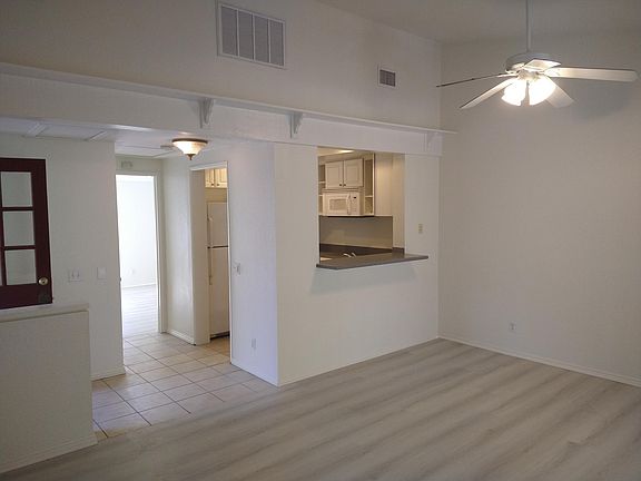 Rarely Available!! Only 6 units in building. Close to shopping and park. Very private, very cute and bright upstairs end-unit condominium with central air conditioning for lease. The condo interior is clean with newer vinyl plank flooring in neutral color. This nicely appointed condo features lots of natural light, a ceramic tile entry foyer and an updated kitchen with ceramic tile floor, newer white cabinets, built-in microwave, high-end slide-in glass top range and solid-surface countertops. A newer white refrigerator is included with the condo. This condo offers central heating and air conditioning!! The Living Room has a vaulted ceiling and switched ceiling fan/light. A deck off the Living Room is perfect for outdoor relaxation. A full size laundry closet is located off the deck. Clothes washer and dryer are included with the condo. The Bedroom offers a vaulted ceiling, switched ceiling fan/light and corner windows bringing in lots of natural light. The en-suite Bathroom is very clean with a spacious Walk-in Closet. Available for showing on 8-23-25. Owner pays for trash and HOA. Tenant pays for electricity and water which will be in tenant's name. Tenant shall comply with HOA rules. No smoking allowed. Condo comes with 1 assigned open parking space. Guest parking is available. There is no garage.