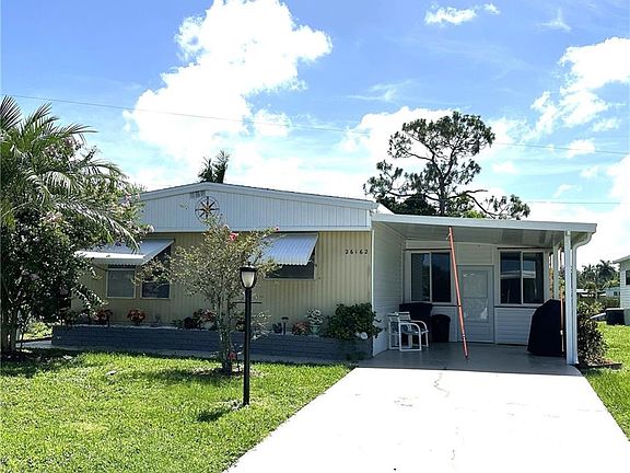 Welcome to 26162 Princess Lane, a delightful retreat in the serene 55+ community of Imperial Harbor in Bonita Springs, FL. This lovely single-family residence, with its 2 cozy bedrooms and 2 well-appointed bathrooms, offers a perfect blend of comfort and convenience, all on a manageable 0.11 acre lot. NEW ROOF, NEW A/C, newer water heater-2022.    Step into an environment where every detail has been carefully maintained, providing an immaculate living space that's ready to welcome you home. The central air system ensures year-round climate control, while the tasteful turnkey furnishings invite you to settle in with ease.    Your new home boasts an attached carport with ample space for two vehicles, ensuring protection from the Florida sun. Additionally, the attached air-conditioned lanai presents a versatile space for relaxation or entertaining, complemented by a separate laundry/storage room for your convenience.    As a resident of Imperial Harbor, you'll enjoy exclusive membership included in this sale to access to the community pool, where you can bask in the sunshine or participate in invigorating water activities. Stay fit and active in the exercise room, join neighbors in engaging activities, or showcase your skills in the billiards room.    Located at the heart of Bonita Springs, this property is moments away from the charming downtown area, with its array of restaurants, Riverside Park outdoor concerts, and local church festivities. Daily essentials are easily met with nearby Publix grocery stores, Coconut Point hospital, and walk-in clinics. Indulge in shopping and dining at The Promenade and Coconut Point, or embrace the sun-kissed life with pristine beaches like Bonita Beach and Barefoot Beach less than 5 miles away.    Discover the blend of independence and community at 26162 Princess Lane, where every day feels like a vacation. Your Florida oasis awaits.