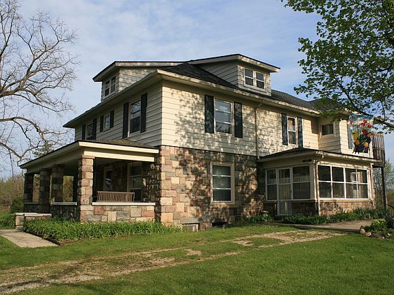 Gorgeous turn of the century stone farm house has been completely updated but still maintains its original charm and beauty. This home is situated on 10 acres with over a mile of trails for walking and biking. The interior boasts a kitchen with granite counter tops and maple cabinets. Beautiful oak floors and tons of oak trim and moldings throughout. There are 4 large comfortable bedrooms, a study, and plenty of room to entertain. A 3 car garage plus a 20 x 30 pole barn and a 17 x 22 workshop too! There is also a walk up attic that could be finished into 3rd floor living space! Hurry to see this beautiful home.