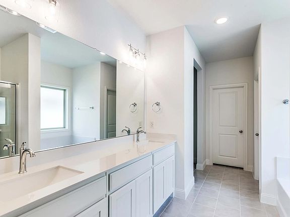Spacious primary suite featuring a large shower, separate soaking tub, and dual vanities