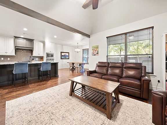 Welcome to this stunning home in Edmond’s desirable Birnam Woods addition—where modern design, timeless craftsmanship, and thoughtful details come together seamlessly. From first glance, the home’s impressive curb appeal, lush landscaping, and inviting entry make a striking impression. Inside, an open-concept layout creates a natural flow between living, dining, and kitchen spaces, ideal for entertaining and everyday living alike. The spacious living room features a corner brick fireplace, ceiling beams, wood floors, and large windows that fill the space with natural light. The adjoining dining area is generously sized, offering plenty of room for family meals or hosting dinner parties. The modern white kitchen is the true heart of the home, showcasing a large center island with seating, sleek cabinetry with abundant storage, extensive counter space, stainless appliances with double ovens, and elegant finishes that make both cooking and entertaining a pleasure. The private primary suite offers a relaxing retreat, complete with a tray ceiling and a beautifully appointed ensuite bathroom featuring double vanities, a walk-in shower, a large soaking tub, and a spacious walk-in closet. Two additional bedrooms are thoughtfully designed with ample storage and easy access to a well-appointed hall bath. The dedicated office provides the perfect space for working from home, studying, or a creative studio—offering flexibility to fit your lifestyle needs. Step outside and enjoy your own private outdoor oasis. The covered patio with an outdoor firepit sets the scene for cozy evenings, morning coffee, or weekend gatherings with family and friends. Tesla in garage charger. Located in the heart of Edmond, Birnam Woods is known for its beautiful homes, mature trees, & convenient proximity to top-rated schools, shopping, dining, and entertainment. This home perfectly balances modern elegance, comfort, and function—making it an ideal choice for today’s discerning buyer. Welcome Home!