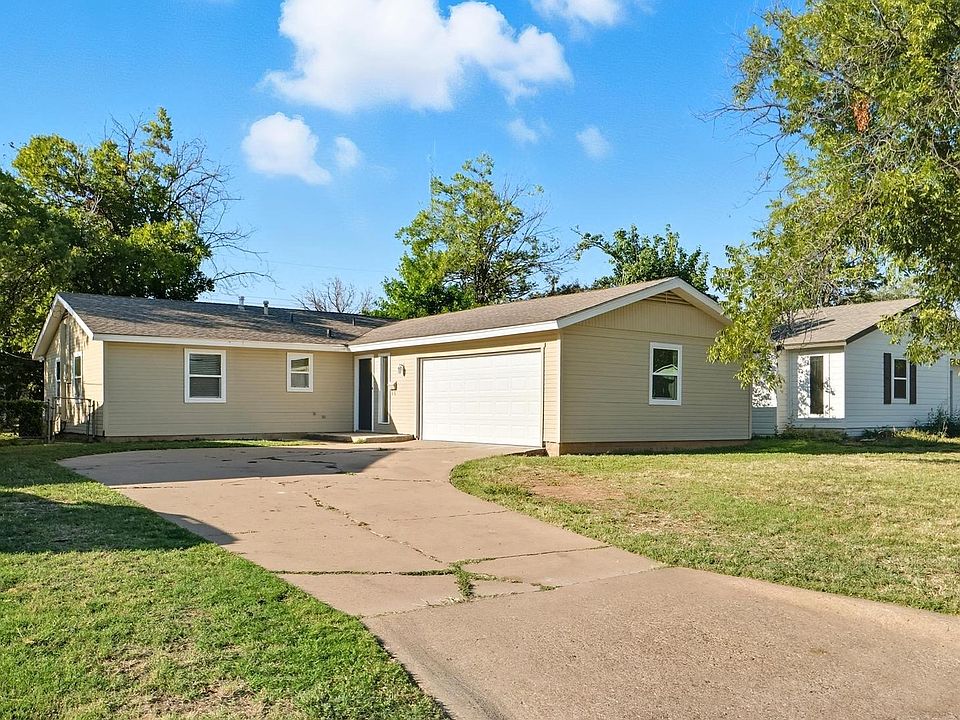 Updated South Abilene Home near Cooper High School. Luxury vinyl plank flooring. Updated kitchen with granite counters, new wall oven, new electric cooktop with vent hood, undermount sink, and stainless-steel refrigerator. Updated main bathroom with new vanity, fixtures, and tub-shower. Spacious primary bedroom with en-suite with floor to ceiling tiled shower. Freshly painted inside and out. 2 car garage. Large backyard with covered back patio and chain-link fence.