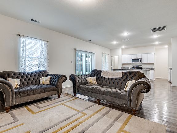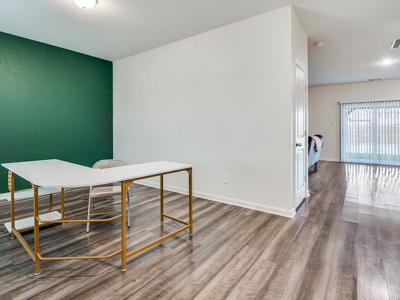 Fall in love with this well maintained, one-owner home that perfectly blends comfort and versatility! From the moment you step inside, you'll be welcomed by warm wood-look flooring and an abundance of natural light that fills the open-concept living space. At the front of the home, a flexible bonus space with an emerald accent wall offers endless possibilities perfect as a home office, playroom, or secondary living area! The spacious living room flows seamlessly into the kitchen, where you'll find stainless steel appliances, a center island, and crisp white cabinetry ideal for both everyday living and entertaining. Peep behind the kitchen to find a half bath across from the garage, perfect for guests who visit. And don't miss the walk-in pantry! In this model, enjoy entertaining downstairs and living privately upstairs! The large primary suite features a ton of natural light, a luxurious oversized shower and a generous walk-in closet. Step outside to enjoy a sprawling backyard and a covered patio that's perfect for relaxing or hosting gatherings. The oversized garage provides ample storage and workspace options for added convenience. Located in an excellent area near parks, shopping, and dining, with easy access to I-35E this home has it all.