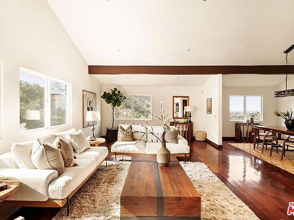Nestled in Glendale's quiet Sleepy Hollow Estates, this split-level home offers a rare sense of privacy, open space, and calm. With wide skies above and mountain views beyond, it's a peaceful retreat that still sits just minutes from city life. The interior is bright and thoughtfully laid out, with lofted ceilings, large windows, and a natural flow between the living, dining, and family spaces. A marble fireplace anchors the den, while Brazilian cherry hardwood and marble floors add warmth and texture throughout. The kitchen blends function and style with Thermador and Fisher & Paykel appliances, a generous island, and ample storage. Just off the den, a skylit sunroom makes for an inviting morning coffee spot or quiet reading area. French doors open to a rear patio surrounded by mature landscaping perfect for outdoor dining or unwinding in the evening. The primary suite is spacious and serene, featuring a large walk-in closet, an additional wardrobe, and a beautifully appointed bathroom with dual sinks, a soaking tub, and a separate shower. Remodeled in 2016 and recently refreshed, the home is move-in ready, with quality finishes and timeless design. Sleepy Hollow Estates is known for its larger lots, winding streets, and relaxed hillside feel a neighborhood that offers privacy, nature, and connection, all within easy reach of Glendale, Pasadena, Burbank, and beyond.
