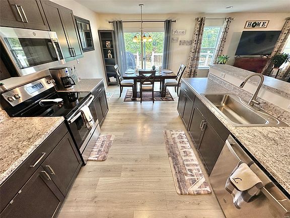 Builder still building same floor plan. You can't build it all at this price! Lots of upgrades to the home when it was built and afte. Only 3 yrs old! Subdivision/sidewalks/street lights. Minutes to Gravois Bluffs, Hwy 30 and 270. Large Open floor plan. Nickel finishes, recess lighting, ceiling fans and luxury Vinyl flooring on main living areas. Kitchen includes a large Breakfast bar, stainless appliances, lots of cabinets, and pantry for plenty of storage. Main Floor laundry. Large Primary bedroom with walk in closet. Bathrooms with adult height vanities. Walk in shower with recess light and glass shower doors! Hall bath is like its own bathroom to the second bedroom. Lower level is a blank canvas to finish with a full egress window! And just waiting for you to finish for an additional bedroom/family room! Just off the dining area leads to a 12x20 composite deck with a premium lot! Look at the view! This home has a Fully fenced level yard! Start packing this is move in ready!