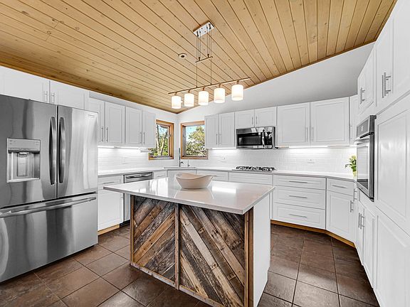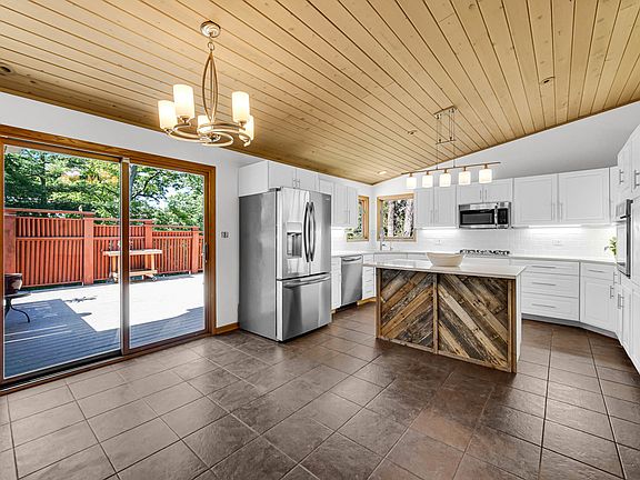 Meticulously maintained 5-bedroom private retreat located steps from and with lake rights to Wooster Lake! Spacious updated kitchen with quartz countertops, white cabinets, subway tile backsplash, stainless steel appliances, and huge island! Radiant heat throughout! Large primary suite featuring very generous size walk-in closet and en suite bathroom with soaking tub and 2-person walk-in shower! Enormous walkout basement with kitchenette and huge recreation room! Oversized 3-car garage (almost 900 sq. ft.) provides plenty of room for all your toys, including room for a car lift! Huge driveway for extra storage! New roof (2022)! Massive low-maintenance synthetic-wood deck overlooking nature! Water rights and private neighborhood boat launch to launch your boat conveniently from your front door! Kayak and canoe storage at the park by the lake! Private neighborhood park conveniently located close by! Don't miss out!