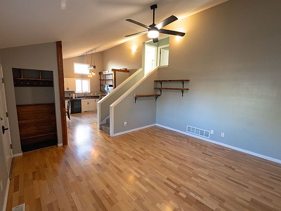 Cute 4 bedroom 2 bathroom home centrally located in Bozeman. Just 5 blocks from Emily Dickenson Elementary School and minutes from many amenities in Bozeman. Fenced in backyard and pet friendly. Wood flooring on the main level. There are vaulted ceilings in the main level living room. Garage has some built in shelving and storage. Setup for Fiber internet. This property is just a 1/2 block from the Streamline bus stop.