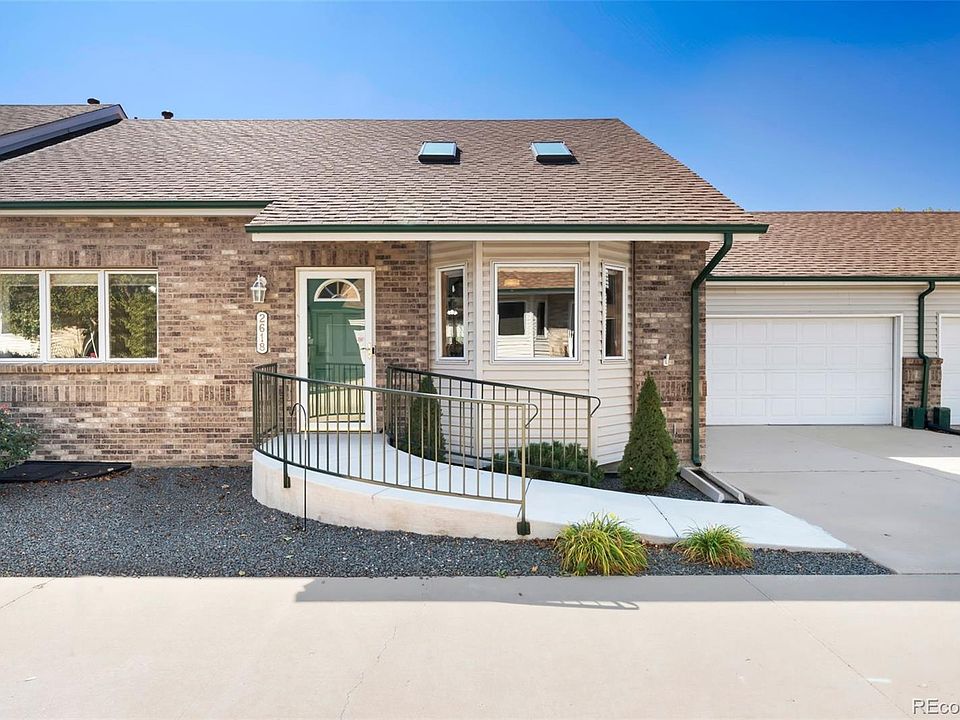 Step into modern comfort in this beautifully updated townhome in the 55+ community Crescent Village in Brighton! Featuring wood floors, vaulted ceilings, updated bathrooms, and a bright, open layout. The kitchen shines with granite counters, stainless Maytag appliances, and an island perfect for entertaining. Enjoy heated tile floors in the bathrooms, a partially finished basement with bedroom and bath, a stairlift, and tons of storage with built-ins and a workshop area. The 2 car garage offers tiled flooring and access to a peaceful private patio backing to the greenbelt and with a retractable awning. Low utility costs, HOA-covered maintenance, and a friendly, walkable neighborhood make this the ideal lock-and-leave lifestyle. Close to Benedict Park, Eagle View Adult Center, and Prairie Center shopping.