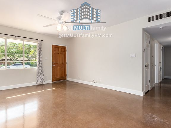 Spacious home in the highly rated Madison School District, conveniently located near the Esplanade. Quiet and quaint neighborhood walking distance to the movie theater, restaurants, and shopping at Biltmore Fashion Park. Features a professional Chefs Jenn Air gas/electric convection range, wired for surround sound in living room, freshly painted interior/exterior, new polished concrete floors providing low-maintenance, and a porcelain tiled master shower. The open kitchen offers ample counterspace, white cabinetry, and updated appliances, including a dishwasher. Generously sized bedrooms include ceiling fans and mirrored closets, while updated/renovated bathrooms provide clean finishes. An additional guest room or office located off the vaulted ceiling room. Includes laundry hookups and washer/dryer for added convenience. Bright, inviting atmosphere with large windows and neutral tones for a cozy feel.