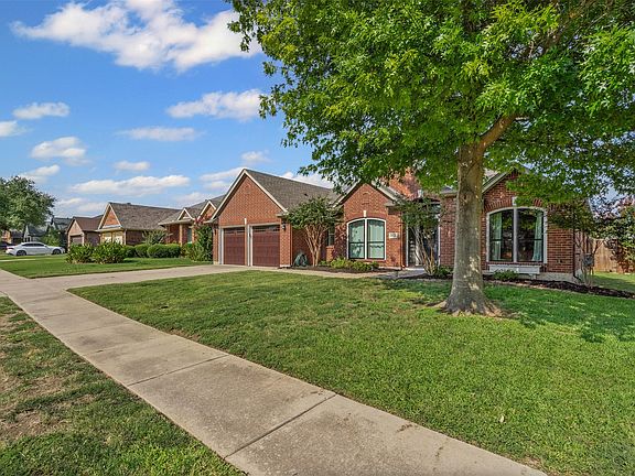 Welcome to this well-maintained residence in desirable Heritage Estates, located within the highly sought-after Mansfield ISD. Blending timeless curb appeal with thoughtful updates, this home offers both comfort and functionality for modern living. A classic brick façade framed by blossoming crepe myrtles and a mature oak tree makes a lasting first impression and leads the way inside to a light-filled floor plan with tall ceilings and thoughtful details. A spacious office provides the perfect place to focus or work from home, while the formal dining room sets the stage for memorable gatherings. The kitchen combines function and style with stainless steel appliances, a built-in gas range, and custom cabinetry, flowing seamlessly into a cozy breakfast room. Just around the corner, a private wing with split bedrooms and a flexible living area or den offers privacy for guests or family. The primary bedroom offers the ultimate space to unwind, including a generous en-suite with dual vanities, a garden tub, and a separate walk-in shower. Outdoors, the covered patio with dual ceiling fans and wiring for a mounted TV creates an inviting space to relax, entertain, or watch the game. The expansive backyard provides plenty of room for play, pets, gardening, or weekend barbecues, making it a true extension of the home. With its versatile layout and prime location in Mansfield ISD, this home is ready to be enjoyed for years to come.