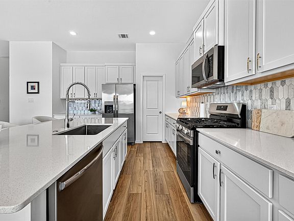 Better than new construction! Built in 2024, this Lennar Fairway "Somerset" plan with brick/stone elevation C is an open-concept home with two bedrooms downstairs including the owner's suite. Spacious office on 1st floor is great for working from home. Two bedrooms upstairs with en-suite full baths surrounded by the game room. Window treatments throughout! Spacious kitchen including gas range. Efficient LED lighting throughout the house. The covered patio off the living area is great for entertaining! Home is gently lived-in and like new! Canterra Creek is a phenomenal community offering a neighborhood pool, walking trails, and various recreational facilities. Schedule your private tour today!