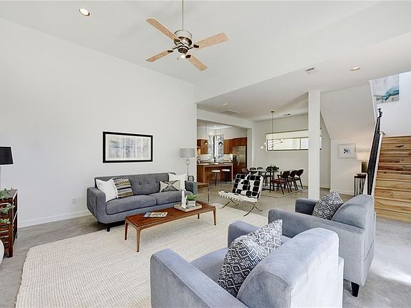 Easy living minutes from "all things Austin" in historic Pemberton Heights. Escape the city as you pull into this quaint complex past soaring Italian Cypress into your 2 car garage. Courtyard entrance ideal for dining al fresco. As you enter this bright modern space the soaring ceilings & open concept living space welcomes you home. Large living room flows to dining & chef's kitchen with large island, Kitchen Aide Architect series appliances, Italian limestone counters & sleek modern cabinetry. The 1st floor is made complete with bedroom/office & full bath as well as access to private fenced backyard. Upstairs includes a large master with custom closets, light oak flooring & private balcony. Master bath doesn't disappoint with custom cabinetry & Italian limestone counters. Second large bedroom with en suite bath & large laundry room finish out this bright and flowing level. Enjoy low maintenance perfection in a prime location! Quintessential lock & leave living!