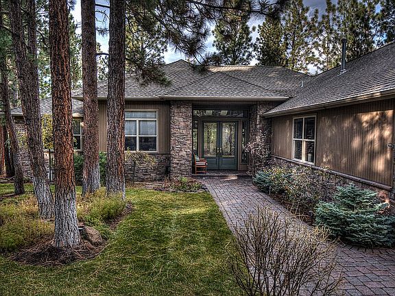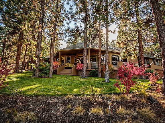 Location, location, location... Stunning home on the 9th fairway at Awbrey Glen, on 0.46 acres, surrounded by numerous mature pine trees. Only two blocks from Awbrey Glenn Club House and golf club amenities. Built in 1997, this light-filled single-story home features an open floor plan with vaulted ceilings and skylights in LR, DR and kitchen. French doors lead to the master suite and to the den/bedroom. The guest bedroom is ensuite. The large kitchen is ideal for entertaining and features granite countertops, cherry cabinetry, hardwood floors, 6 burner gas cooktop and double wall ovens. The wraparound 1400 sq ft deck (with trex like material) overlooks the fairway for perfect outdoor living. Three bedrooms, with one used as a den (and easily converted to a bedroom) plus 2.5 bathrooms. You will enjoy 2707 sq ft of living space, and a spacious 890-sq.-ft. 3 car garage, with epoxy coated floor and abundant storage. Note: Please wear a mask while touring this home.