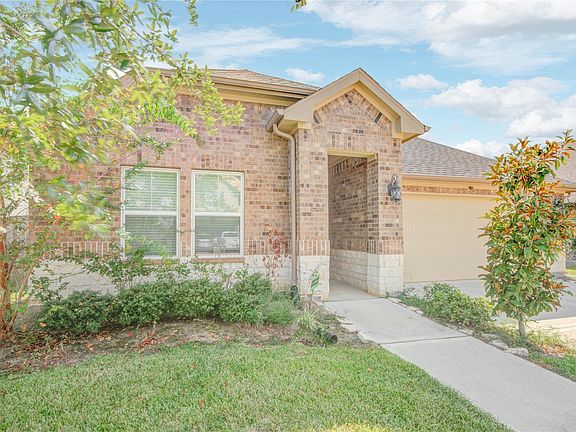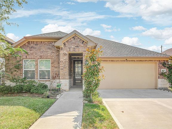 LIKE NEW! BEAUTIFUL ONE STORY 4 BEDROOM 3 BATHROOM 2 CAR GARAGE IN RIVERSTONE RANCH!!! The spacious kitchen features a large island that overlooks the family room. It boasts light grey cabinets, quartz countertops, stainless steel appliances, elegant light fixtures, LED lighting, exhaust fan, generous walk-in pantry, stylish backsplash, and entire house soft close cabinets and drawers! The private owner's suite is a retreat unto itself, offering a luxurious bath with walk-in shower, separate soaking tub, dual sinks, and beautiful tile flooring. Exterior features a stunning combination of four-sided brick and front stone elevation. Energy efficiency is key feature, with 13 SEER HVAC system, low-E windows, tankless water heater, and digital thermostat. Cover back patio, beautiful landscaping, and spacious backyard. The community also includes walking trails, pool, and park, offering a full range of amenities to enhance your lifestyle. Home offers convenient access to Beltway 8 and I-45.