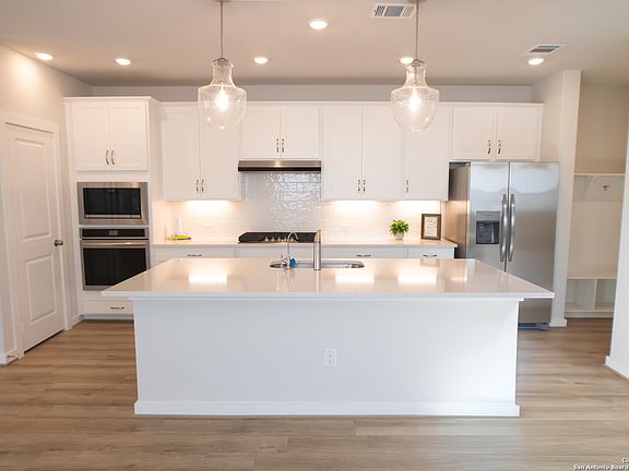 Don't miss your chance to own one of the last built Crockett floorplans in the highly sought-after Ladera Community! This beautifully crafted 4-bedroom, 3.5-bath home was built in 2024 and has been meticulously maintained, showcasing a variety of premium upgrades and designer selections throughout. Enjoy an open-concept layout featuring quartz and silestone countertops, stainless steel appliances, and cabinet hardware installed throughout, adding both function and style. Additional thoughtful touches include a built-in backpack rack and abundant storage options. Upstairs, you'll find a spacious loft, ample bedrooms, two full baths, offering a flexible living space. Step outside to your own private retreat, complete with an extended covered patio, built-in gas grill, and outdoor kitchen-perfect for entertaining. A newly added extended concrete walkway leads to the backyard, where a basketball court waits for endless outdoor fun. Home also includes a new water softener system. This is more than just a home-it's a lifestyle. This community offers jogging trails, bike trails, an Olympic size swimming pool, and playgrounds. Minutes from Lackland Airforce Base, shopping, and dining. Schedule your private tour today before this rare opportunity is gone!