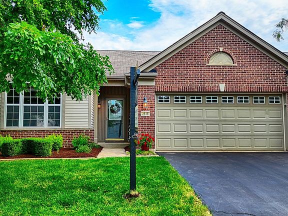 *O.H. Sunday*Edgewater by Del Webb* Popular Wilmette model with 1938 sq. ft., Sunroom, and Extended Garage. Driveway has sunny south exposure! Kitchen, eating area, and sunroom has luxury vinyl planking. Kitchen has 42" higher maple cabinets, backsplash, newer refrigerator, stove, microwave and dishwasher. Newer hot water heater and carpet replaced in living/dining room. New light fixture in dining room. Crown molding in den, Bdrm. 2, and living room and dining room. Sink in laundry room.Refrigerator, metal cabinets and shelves in garage stay. Large patio and awning. House located on interior lot. Edgewater by Del Webb is a lifestyle with 2 pools, hot tub, tennis and bocce courts, a wonderful fitness center, and 24/7 gated community.Creekside Lodge is the heart of this community with so much to do! Edgewater takes care of your snow and grass! Quick possession possible. *FIRST SHOWINGS START ON SATURDAY 6/22*
