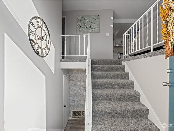Live the Alabama Hill lifestyle in this recently remodeled home with peek-a-boo bay view! Walking/Biking distance to Railroad trail connecting you to Barkley Village, Whatcom Falls, Blodel Donovan park on Lk Whatcom & more. Close to everything, yet peaceful setting & quiet double cul-de-sac location. The lower level has been completely remodeled and includes all new flooring, paint & half bath and can easily double as a 4th BR or MIL suite. Upstairs has also had a full face lift with all new paint, newer carpet, updated primary bath and newer fridge & stove! Plus, new furnace & hot water heater. Enjoy the large sunny lot featuring new front deck, back patio & 9 tree orchard - pear, apple, plums & figs. Don't miss the shop inside the garage!