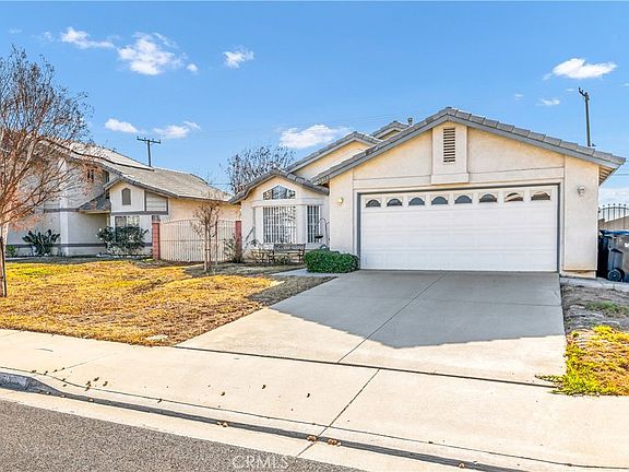 **GREAT NEW PRICE** No HOA!! Low taxes makes this home more affordable! This charming single-story, 3-bedroom, 2-bathroom home offers great curb appeal, as you step through the double doors, you're greeted by a spacious living and dining area, ideal for entertaining. Continuing through the home, you'll find a cozy family room featuring a gas fireplace, perfect for those cooler evenings a sliding glass door opens to a generously-sized backyard, providing ample space for outdoor activities, gardening, or a pool. All 3 bedrooms are down the hall, the large primary bedroom features a walk in closet and a bathroom with a soaking tub and double vanity. This home is a blank slate, ready for to suit your personal style and needs. Conveniently located within walking distance to Valley View High School and Mountain View Middle School, With easy access to the 60 Freeway and nearby shopping, everything you need is just minutes away. Additional highlights include the potential for RV parking, no HOA, and low property taxes, making this home an incredible value. Don't miss out on the opportunity to make this your dream home!