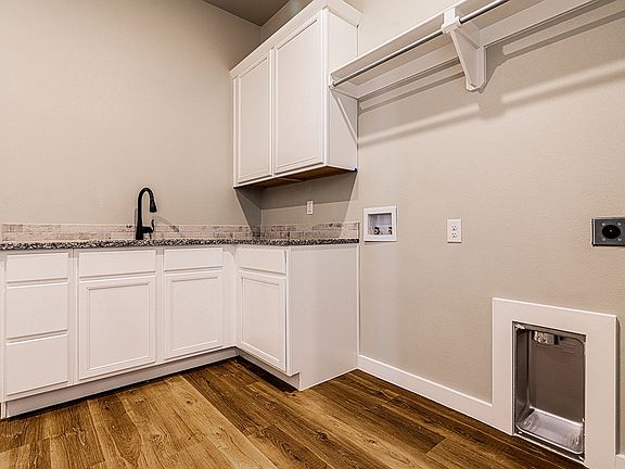 This 4 bedroom, 3 bathroom new home features an inviting covered front porch with tall arches and a striking stone and brick exterior. Inside the home is an open-concept living space with vaulted ceilings accented with exposed beams. Great for entertaining and spending time with family, the grand kitchen features Moen® fixtures, stainless-steel LG® appliances, a large kitchen island, a butler's pantry, double ovens and more. The master suite includes a luxurious master bathroom with a glass shower, a free-standing tub, and a walk-in closet with storage and counter space. Finally, this 2,660 square foot home offers an interior brick bonus room, a floor-to-ceiling brick fireplace, an extended utility room, and built-in desk space.